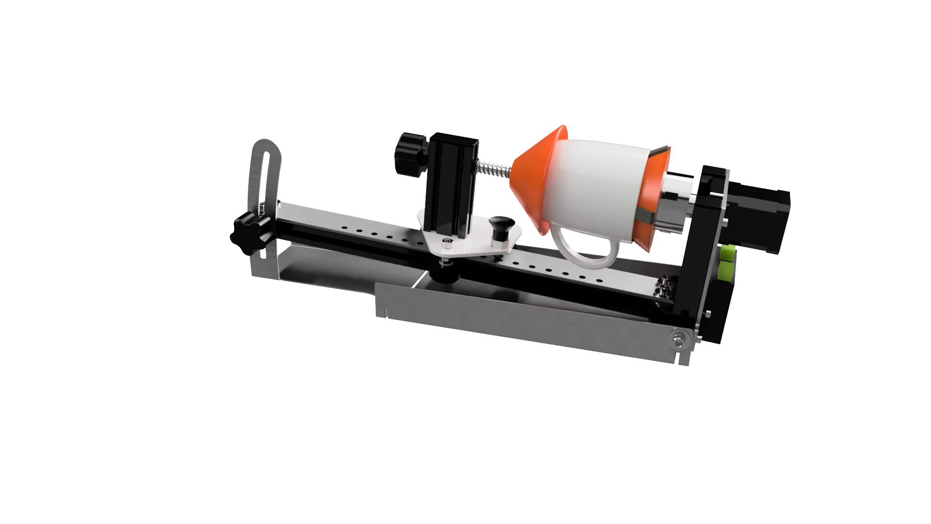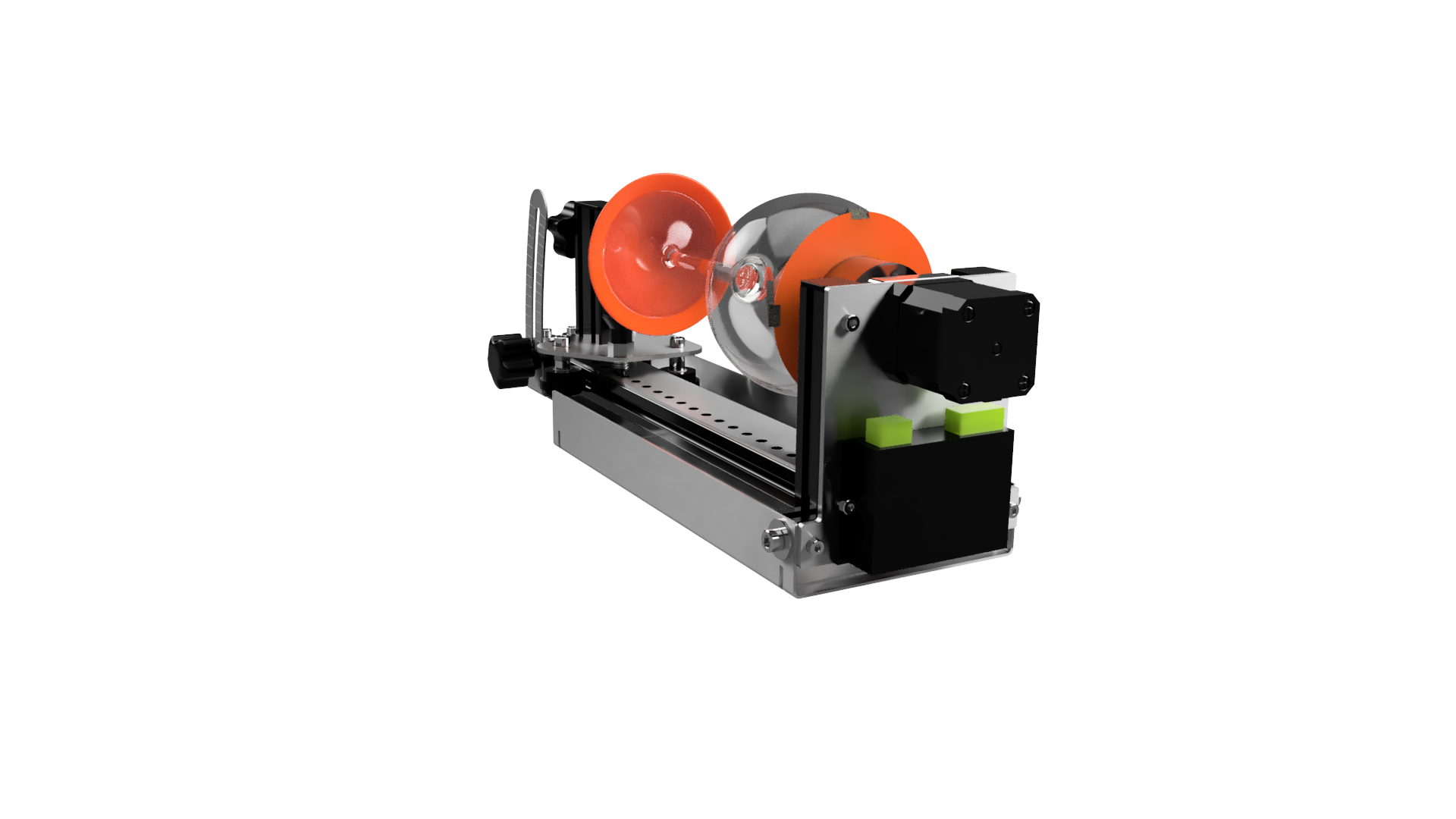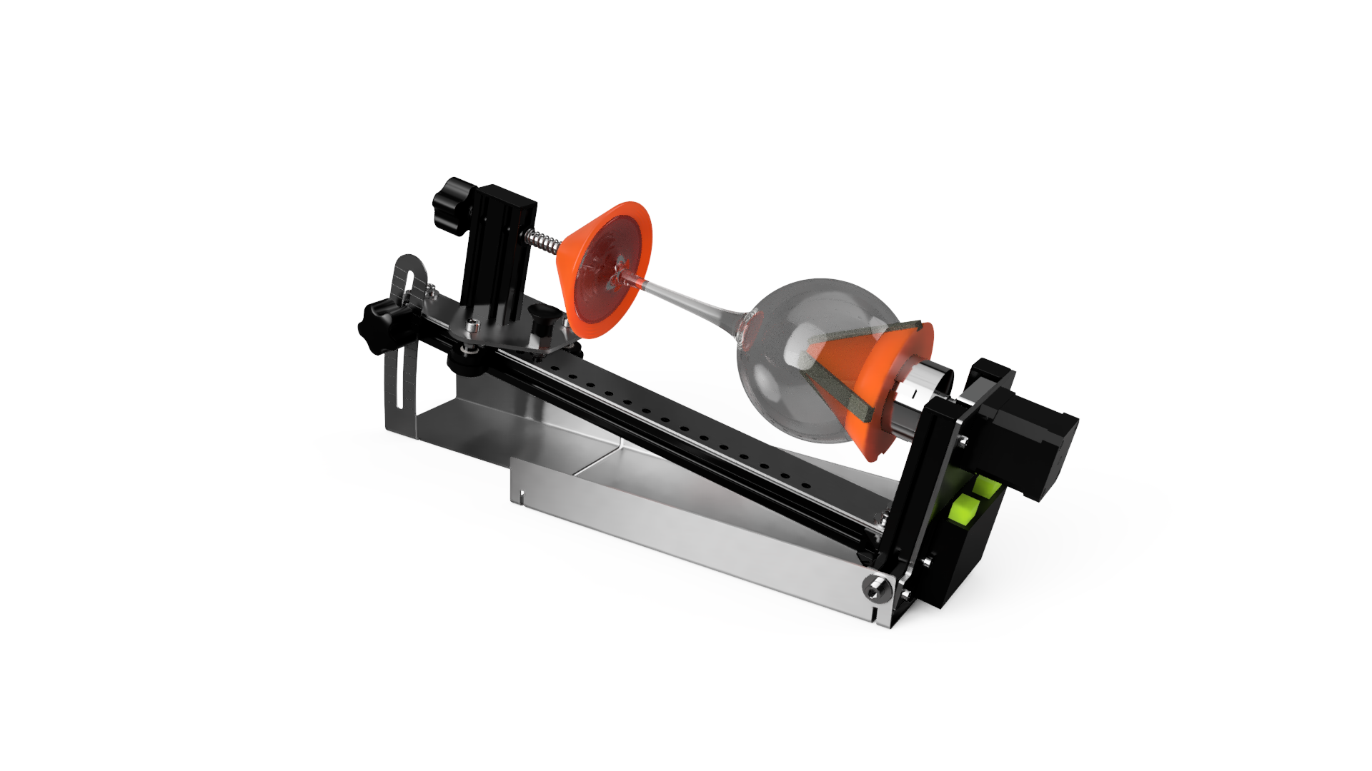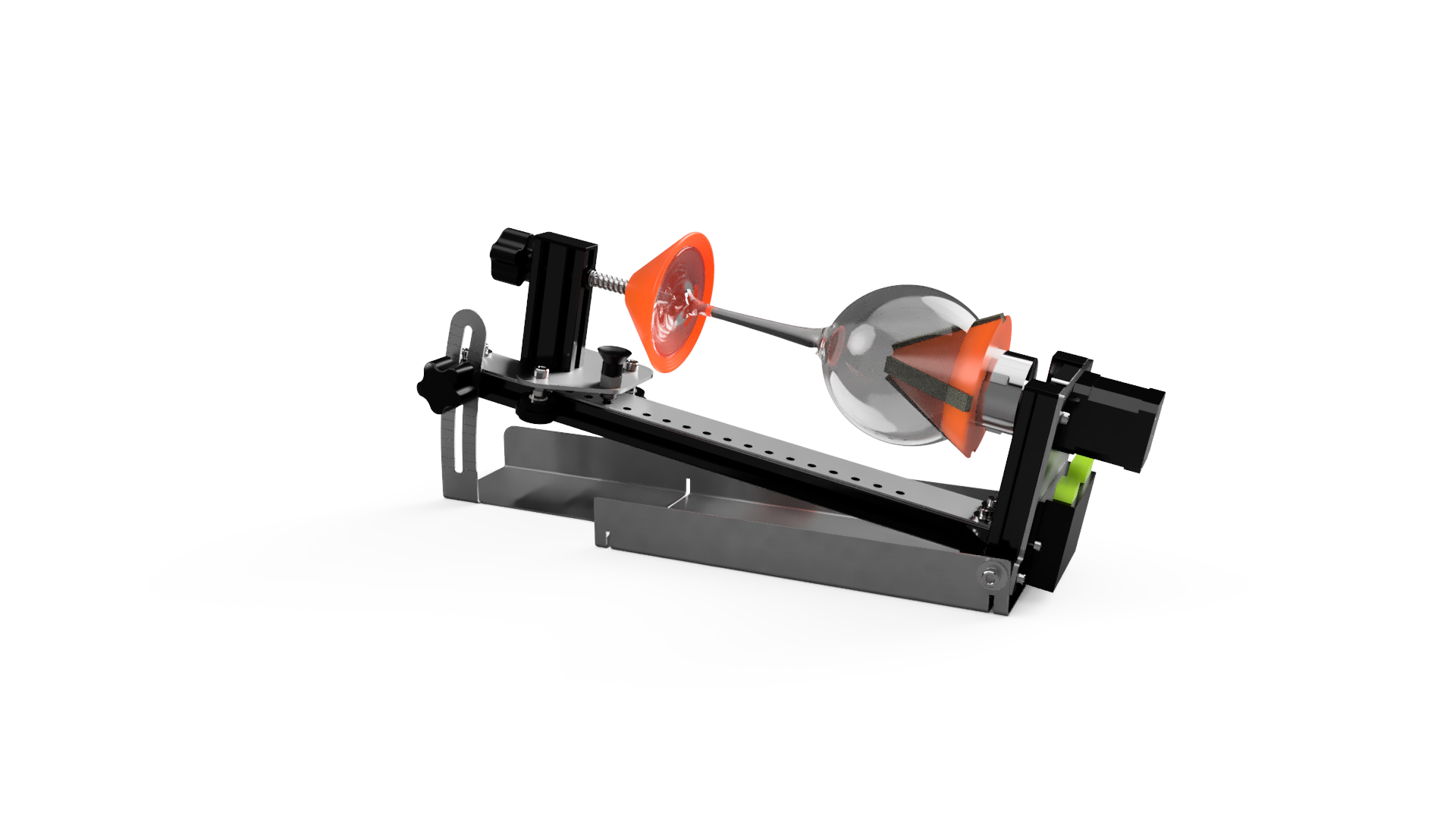 - Simple glass positioning: cone and stepped rotating center attachment